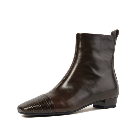 TinaCus Genuine Leather Women's Handmade Chunky Heel Side Zip Up Square Toe Ankle Boots with Front Zipper Decor
