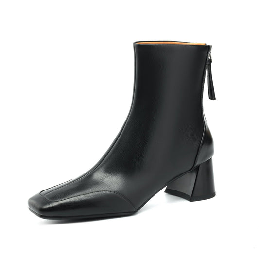 TinaCus Women's Genuine Leather Square Toe Handmade Mid Heel Back Zip Ankle Boots