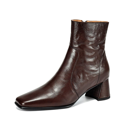 TinaCus Women's Genuine Leather Square Toe Handmade Block Heel Side Zipper Ankle Boots