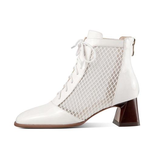 TinaCus Women's Handmade Patent Leather Mesh Hollow Chunky Heel Band Zip Up Summer Ankle Boots