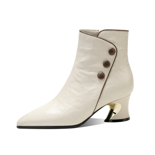 TinaCus Women's Genuine Leather Spool Heel Handmade Side Zip Pointed Toe Ankle Boots