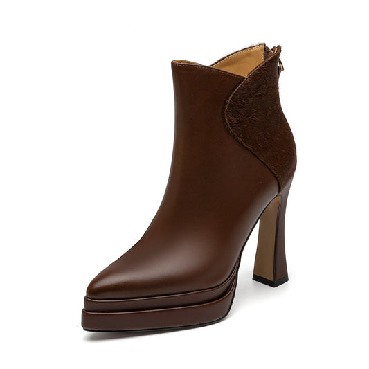 TinaCus Women's Genuine Leather Horsehair Handmade Zip Up High Heel Platform Ankle Boots