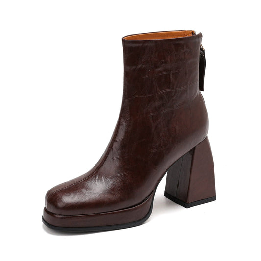 TinaCus Women's Genuine Leather Square Toe Handmade Chunky Heel Zip Up Ankle Boots