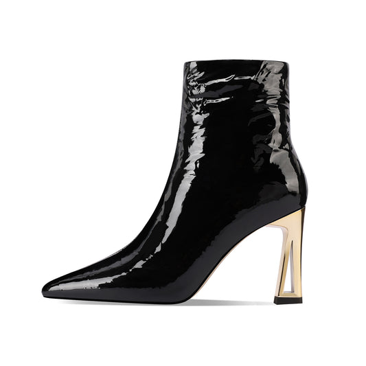 TinaCus Women's Patent Leather Handmade Metal Heel Side Zip Up Ankle Boots
