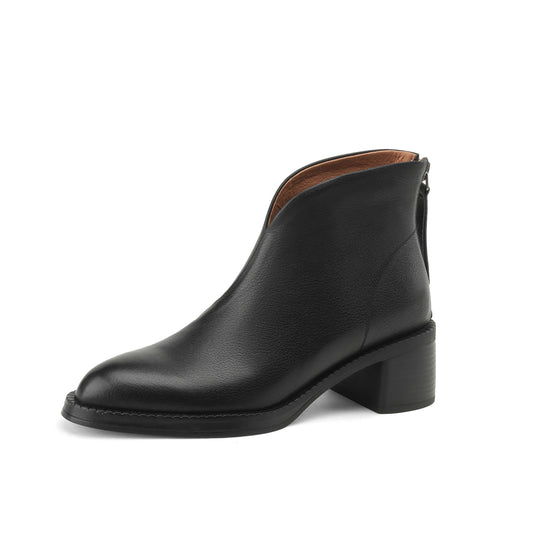 TinaCus Handmade Women's Back Zipper Genuine Leather Block Heel Ankle Boots