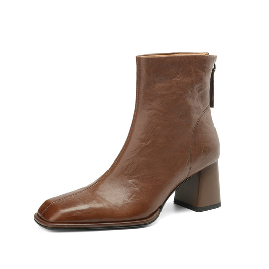 TinaCus Women's Genuine Leather Square Toe Handmade Chunky Heel Back Zip Up Ankle Boots