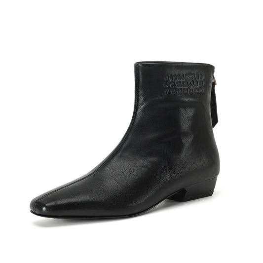TinaCus Handmade Women's Genuine Leather Square Toe Block Heel Back Zip Ankle Boots