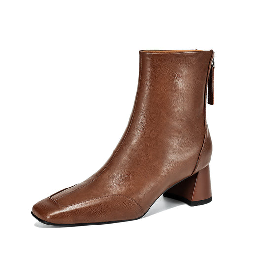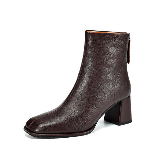 TinaCus Women's Genuine Leather Square Toe Block Heel Handmade Back Zip Up Ankle Boots