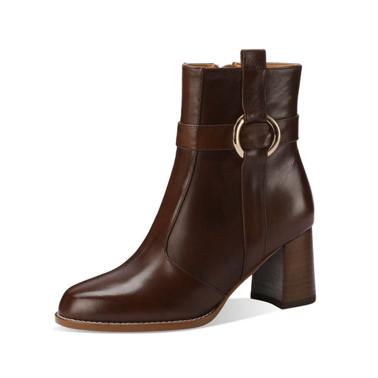 TinaCus Women's Genuine Leather Pointed Toe Chunky Heel Buckle Handmade Side Zip Ankle Boots