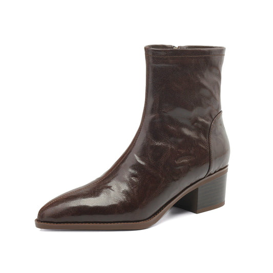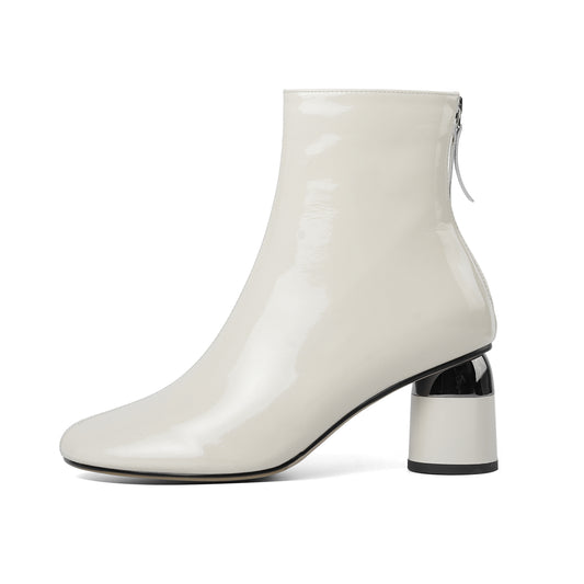 TinaCus Women's Patent Leather Block Heel Handmade Back Zip Up Ankle Boots