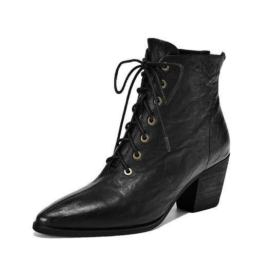TinaCus Women's Genuine Leather Chunky Heel Handmade Side Zip Pointed Toe Ankle Boots