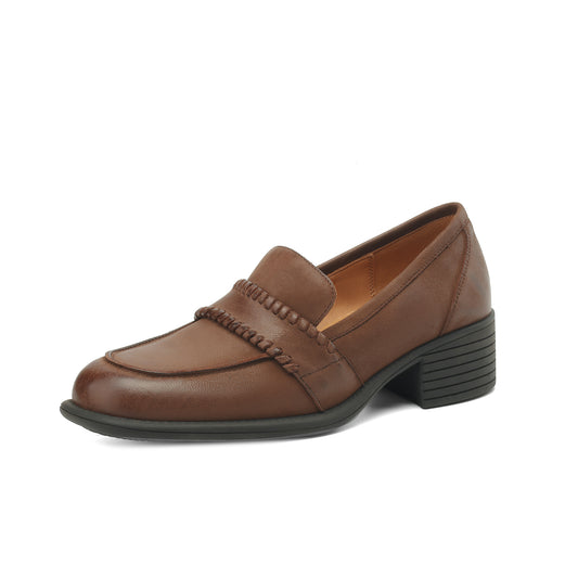 TinaCus Women's Handmade Genuine Leather Chunky Heel Slip On Pumps