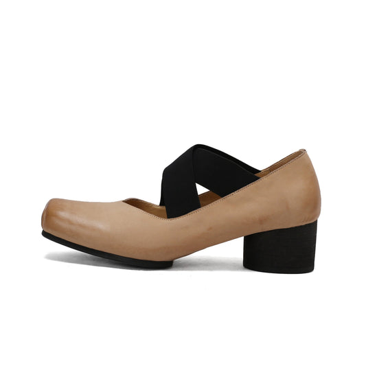 TinaCus Women's Handmade Genuine Leather Chunky Heel Pumps
