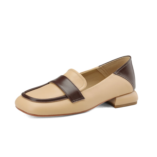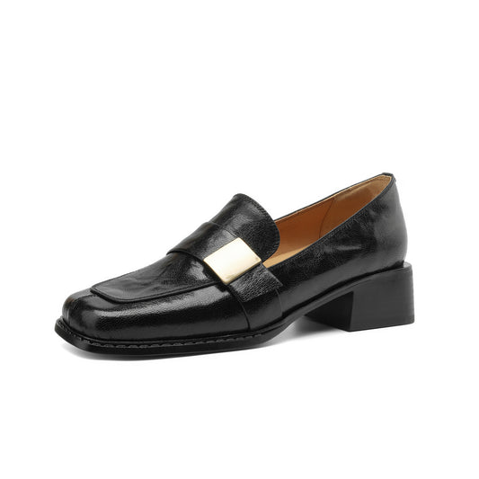 TinaCus Genuine Leather Women's Handmade Square Toe Mid Block Heel Slip On Graceful Oxford Loafer Pumps with Cool Buckle