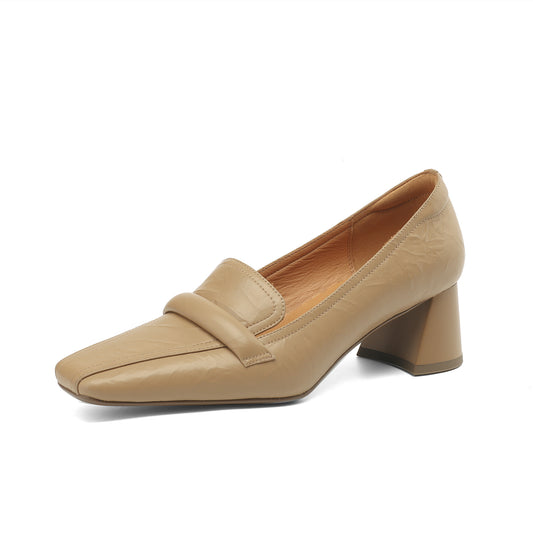 TinaCus Women's Square Toe Handmade Genuine Leather Block Heel Slip On Pumps