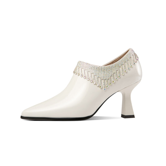 TinaCus Pointed Toe Women's Patent Leather Glitter Tassel Handmade Spool Heel Side Zip Pumps