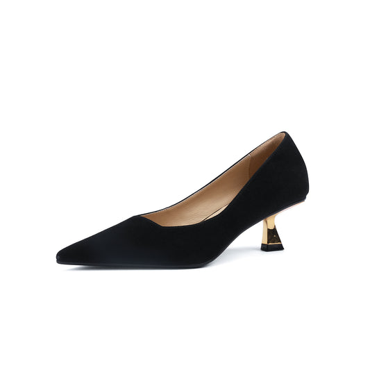 TinaCus Suede Leather Handmade Women's Pointed Toe Metal Heel Slip On Dress Pumps Shoes