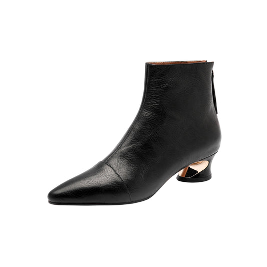 TinaCus Women's Handmade Genuine Leather Spool Heel Back Zip Pointed Toe Ankle Boots