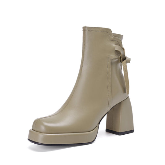 TinaCus Women's Genuine Leather Handmade Block Heel Back Zipper Ankle Boots