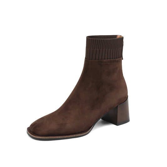TinaCus Women's Handmade Suede Leather Block Heel Back Zip Up Ankle Boots