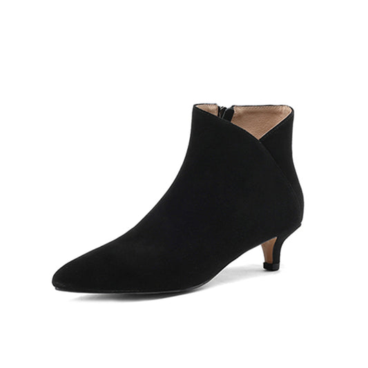 TinaCus Women's Handmade Leather Kitten Heel Side Zip Pointed Toe Ankle Boots