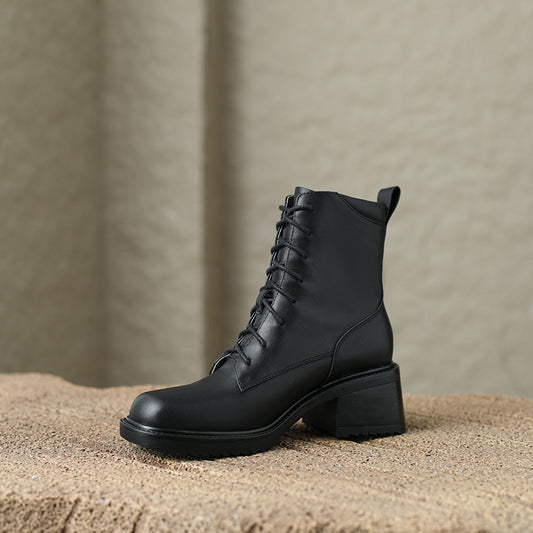 TinaCus Women's Round Toe Lace Up Chunky Heel Handmade Genuine Leather Ankle Boots