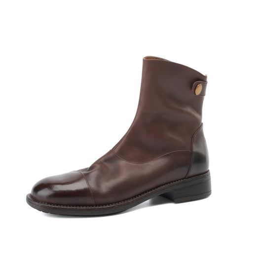 TinaCus Genuine Leather Women's Round Toe Handmade Back Zip Up Ankle Boots