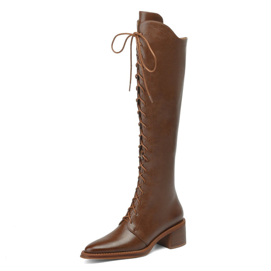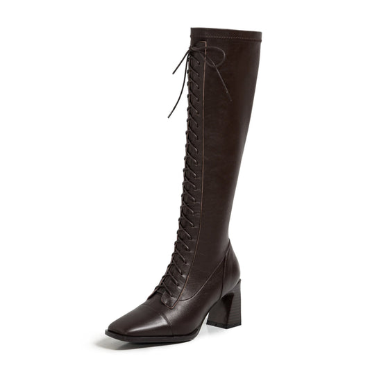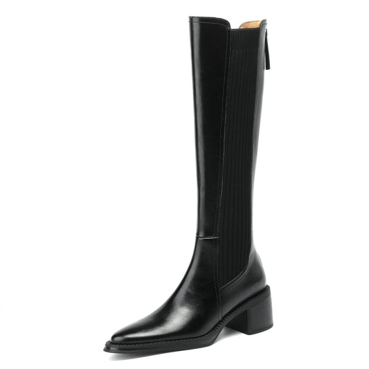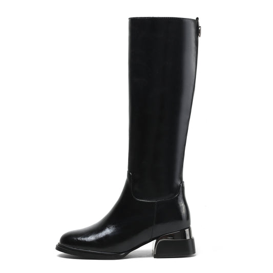 TinaCus Genuine Leather Square Toe Chunky Heel comfortable Knee High Boots