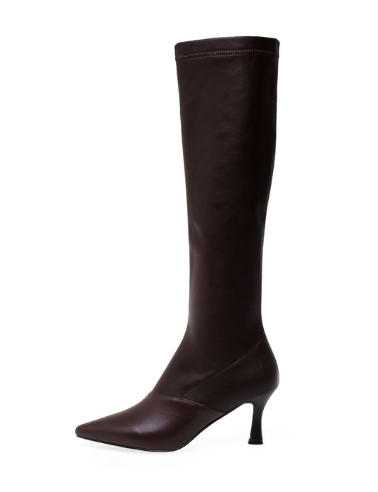 TinaCus Women's Handmade Genuine Leather with Elastic Fabric Pointed Toe Side Zip Mid Heel Stylish Knee High Boots