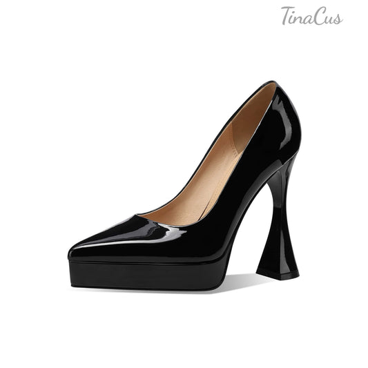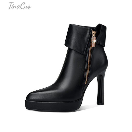 TinaCus Platform High Heels Zip up Ankle Boots Women's Pointed Toe Genuine Leather Handmade Chic Booties