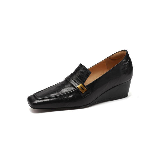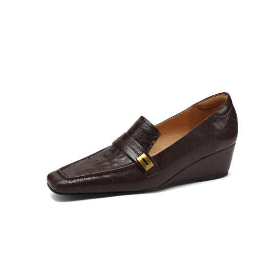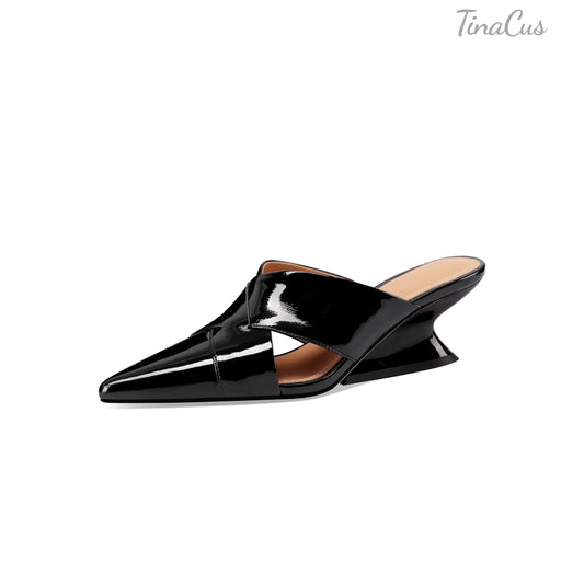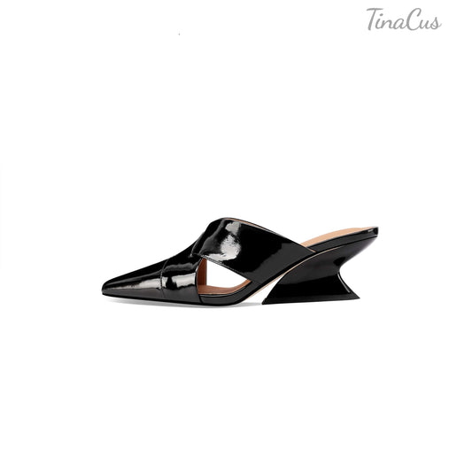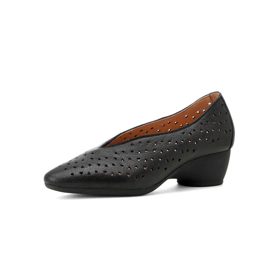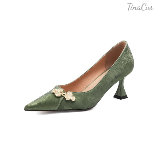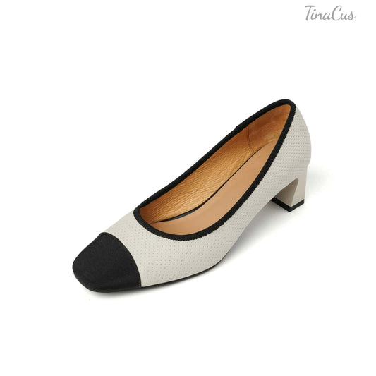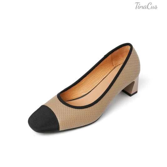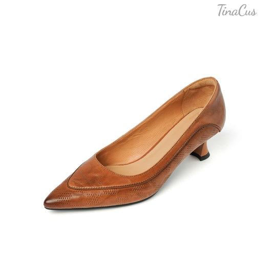 TinaCus Women's Slip-on Pumps Handmade Genuine Leather Pointed Toe Chunky Heel Casual Shoes