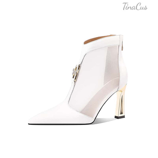 TinaCus Women's Cap Toe Genuine Leather Ankle Boots Handmade High Heels with Back Zipper