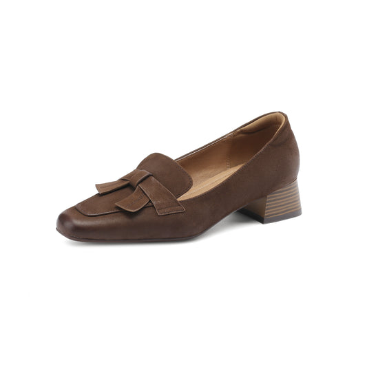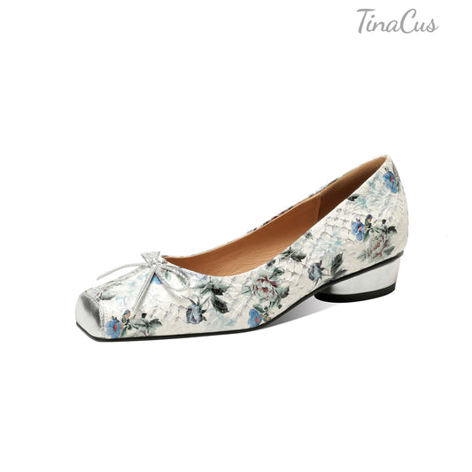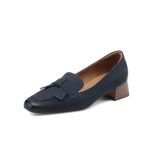 TinaCus Women's Square Toe Slip on Loafers Shoes Handmade Bowknot Chunky Heels Cute Pumps