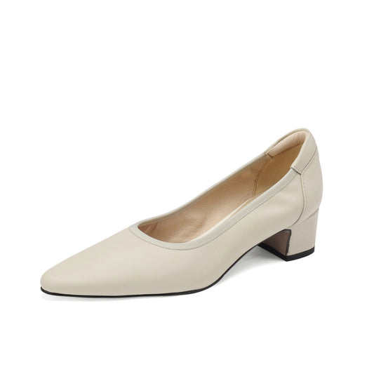 TinaCus Women's Handmade Genuine Leather Pointed Toe Chunky Heel Slip On Pumps