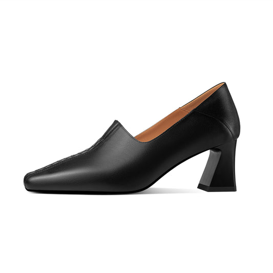 TinaCus Genuine Leather Handmade Women's Square Toe Unique Mid Heel Slip On Comfortable Pumps