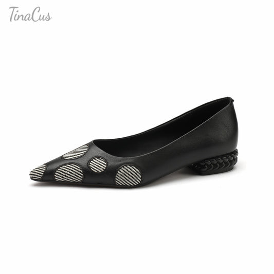 TinaCus Women's Handmade Genuine Leather Pointed Toe Flat Low Heel Pumps