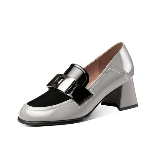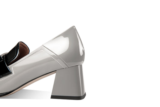 TinaCus Women's Handmade Square Toe Low Chunky Heels Stylish Patent Leather Loafers Shoes with Bowknot