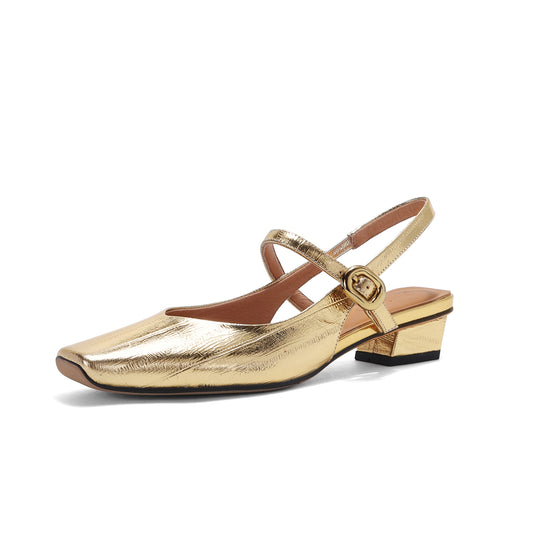 TinaCus Women's Leather Handmade Chunky Heel Buckle Slingback Sandal Pumps