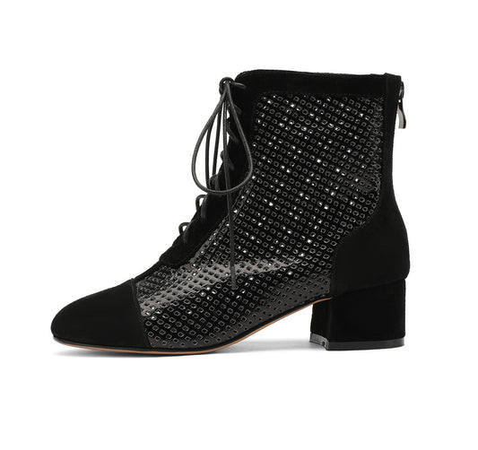 TinaCus Genuine Leather and Mesh Women's Handmade Back Zip Pointed Toe Summer Ankle Boots