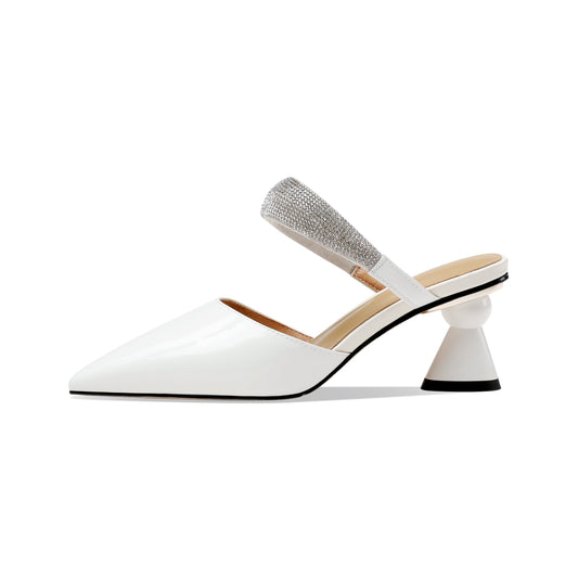 TinaCus Women's Glossy Patent Leather Handmade Closed Toe Cone Heel Mule Sandals with Sparkling Glitter
