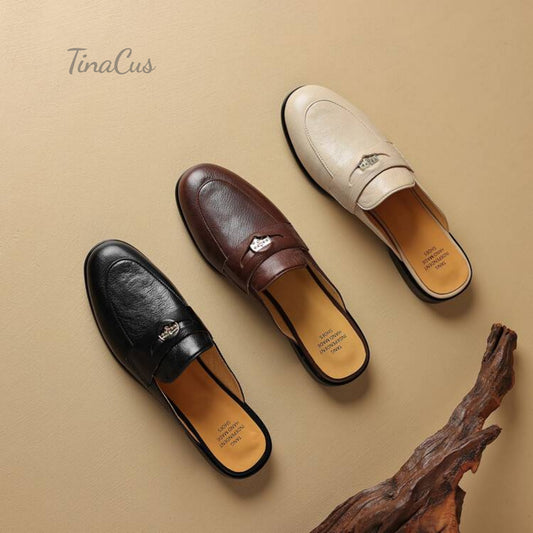 TinaCus Women's Round Toe Soft Genuine Leather Handmade Flats Comfortable Mules