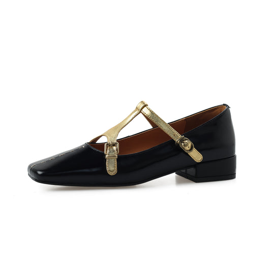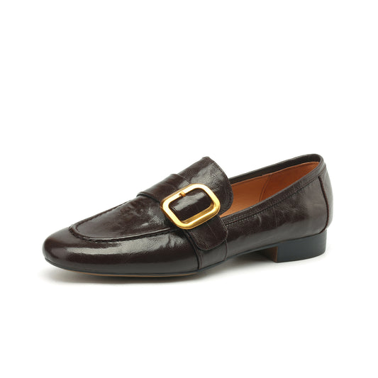TinaCus Handgefertigte flache Damenschuhe aus echtem Leder mit quadratischer Zehenpartie und Schnallen