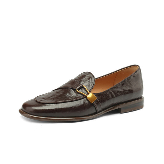 TinaCus Damen-Freizeitschuhe aus echtem Leder mit quadratischer Zehenpartie, handgefertigt, Schnallendekor, flache Schuhe