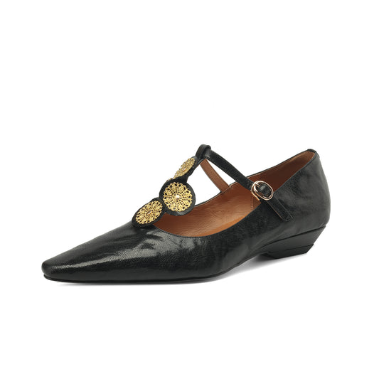 TinaCus Handgefertigte Mary-Jane-Schuhe aus echtem Leder für Damen mit T-Riemen und Schnalle