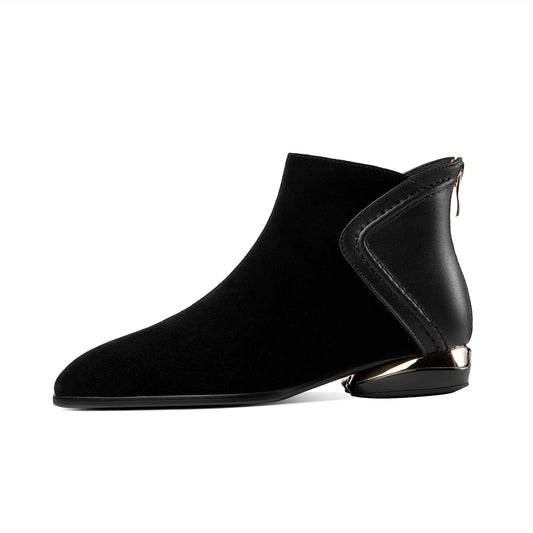 TinaCus Damen-Stiefeletten aus echtem Wildleder, handgefertigt, mit Reißverschluss hinten, flach