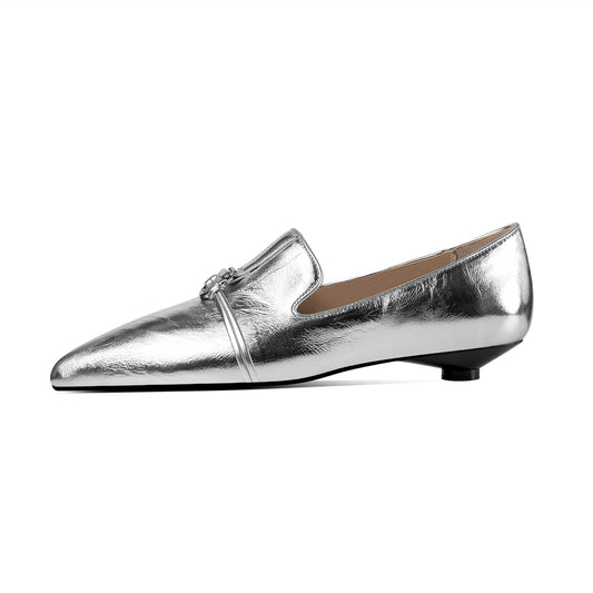 TinaCus Damen-Pumps, handgefertigt, echtes Leder, spitze Zehenpartie, flach, niedriger Absatz