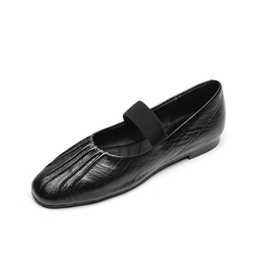 TinaCus Damenschuhe aus echtem Leder, Gummiband, handgefertigt, runde Zehenpartie, bequeme flache Schuhe