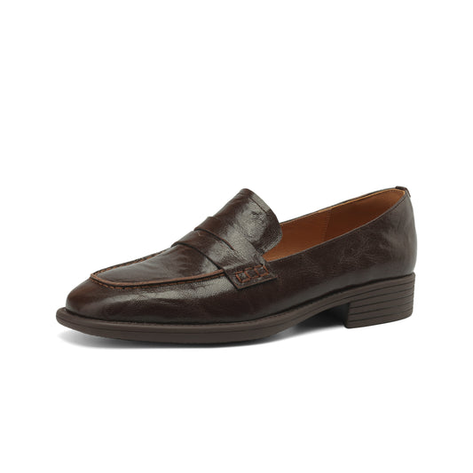 TinaCus Damen-Schlupfschuhe aus echtem Leder, handgefertigt, quadratische Zehenpartie, flache Schuhe