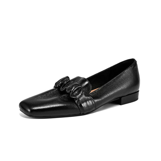 TinaCus Damen-Schlupfschuhe aus echtem Leder, handgefertigt, mit Rüschen, quadratischer Zehenpartie, flach