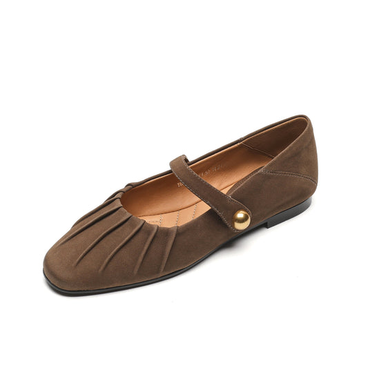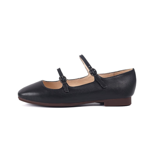TinaCus Handgefertigte Damenschuhe aus echtem Leder mit quadratischer Zehenpartie und Doppelschnalle, bequeme flache Schuhe
